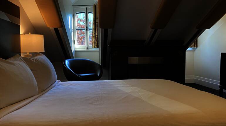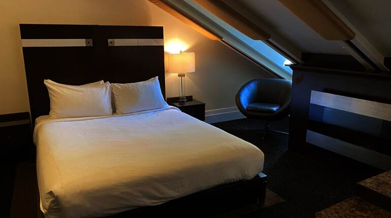 La Classique Stewart vous charmera avec son plafond mansardé et son foyer électrique. Descendez quelques marches en entrant dans cette chambre remplie d'histoire, nommée en l'honneur du quincailler Stewart Scott, qui y a déjà habité.